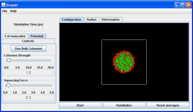 # of molecules tab: Used to set the initial configuration of the droplet.