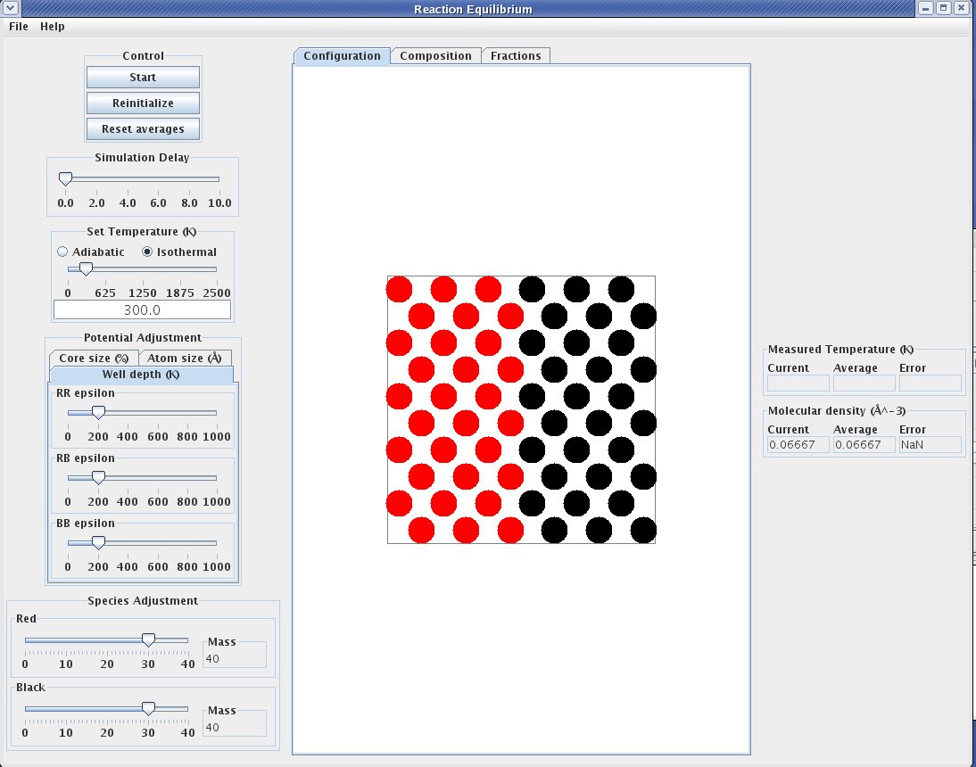 When the Dimer Reaction Equilibrium application is started, it should look something like this: